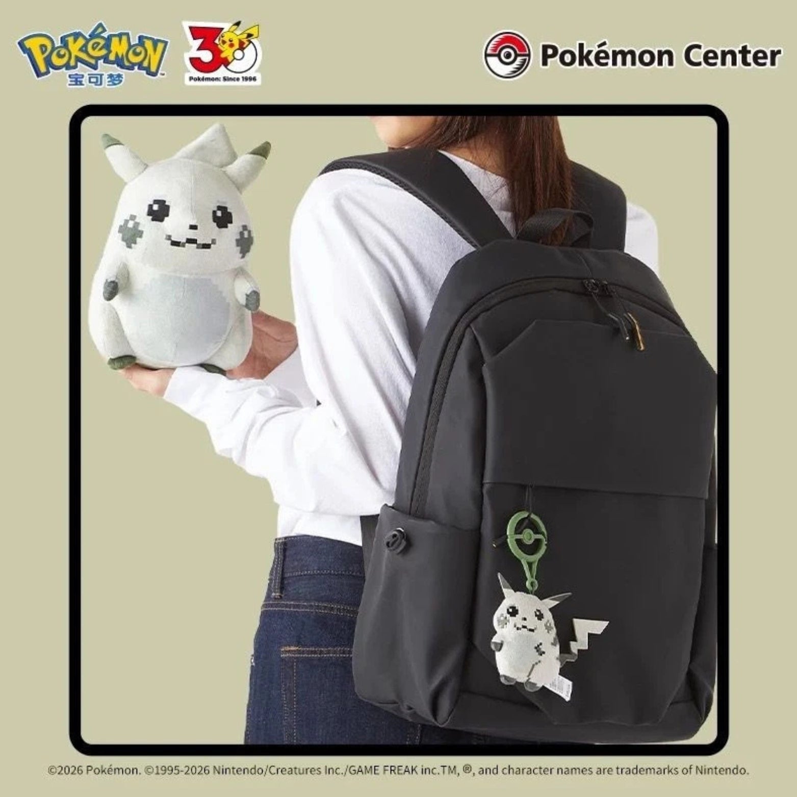 Each set includes a retro style, "Pikachu of Beginnings Plush" and "Pikachu of Beginnings Mascot (Bag Charm)"!